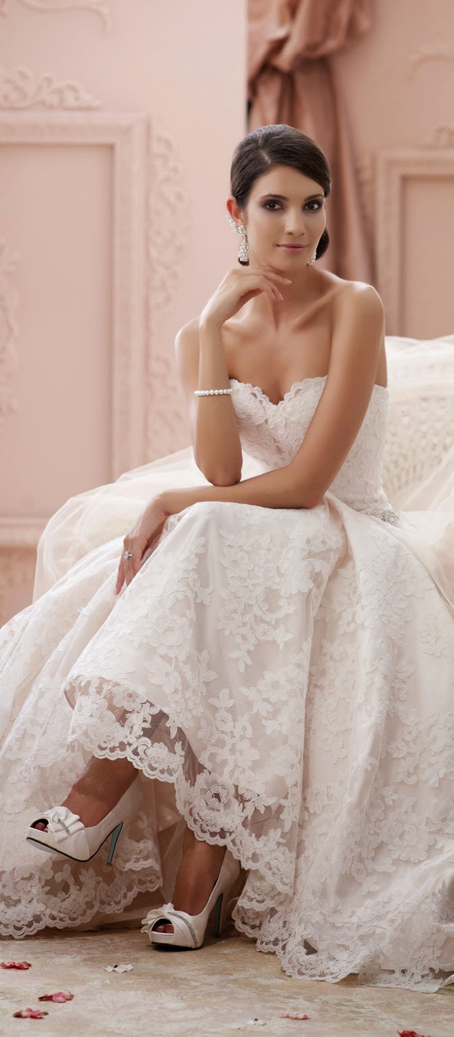 bridal fashion minute to introduce you to one of the prettiest bridal collections out there, David Tutera for Mon Cheri Spring 2015. Each and every gown is super fancy and perfect for a sophisticated wedding affair. Filled with whimsy, beauty and delight, these wedding dresses will make you feel like you’re in your very own fairy-tale romance.